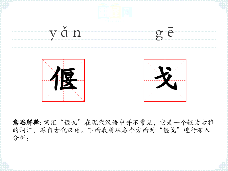 词汇“偃戈”在现代汉语中并不常见,它是一个较为古雅的词汇,源自古代汉语。下面我将从各个方面对“偃戈”进行深入分析: