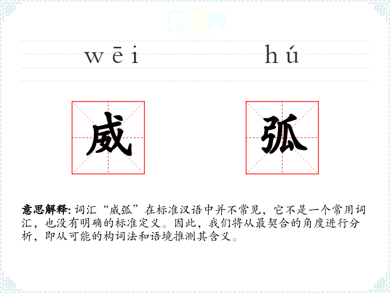 词汇“威弧”在标准汉语中并不常见,它不是一个常用词汇,也没有明确的标准定义。因此,我们将从最契合的角度进行分析,即从可能的构词法和语境推测其含义。