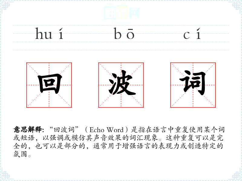 - 反义词:无(回波词本身是一种特定的语言现象,没有直接的反义词)
