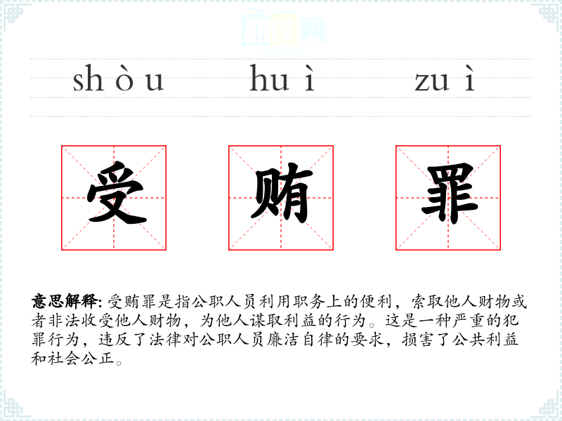 "受贿罪"的意思解释、受贿罪是什么意思由翻译网汉语词典查词提供。