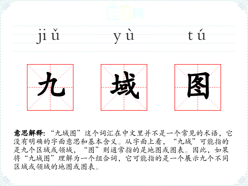“九域图”这个词汇似乎没有明确的词源和历史演变记录,它可能是一个现代创造的词汇,或者在特定的学术或技术领域中被创造性地使用。