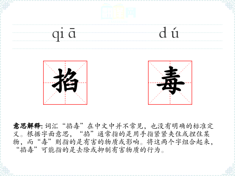 - 基本含义:可能指在医学、农业或其他领域中去除毒素或有害物质的行为。