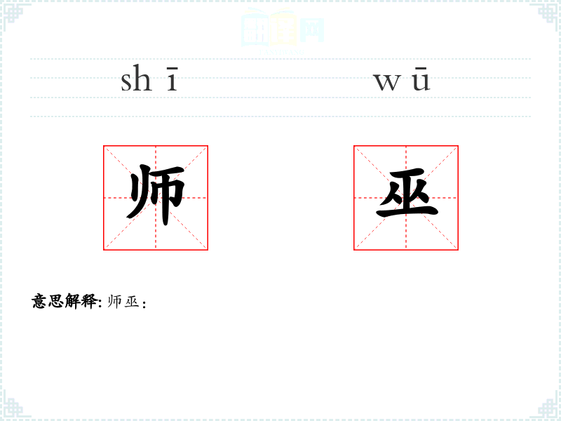 - 词源:“师巫”一词源于古代汉语,其中“师”指教师或专家,“巫”指从事巫术的人。