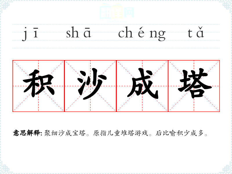 聚细沙成宝塔。原指儿童堆塔游戏。后比喻