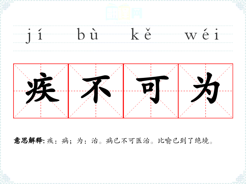疾:病;为:治。病已不可医治。比喻已到了绝境。