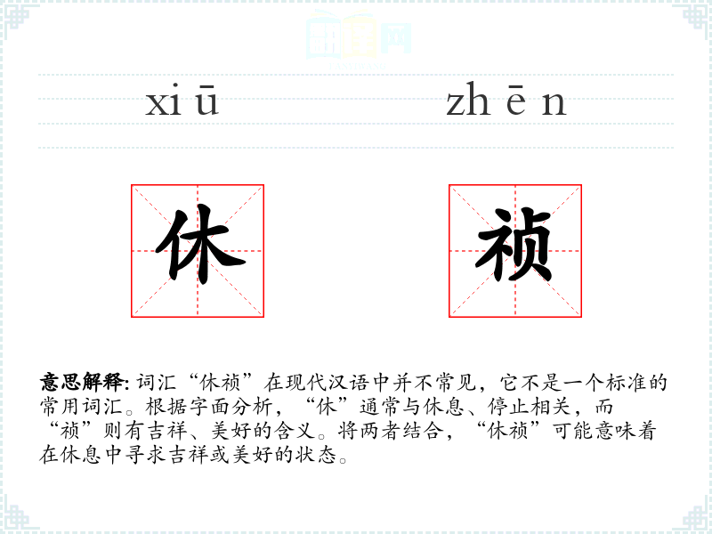 词汇“休祯”在现代汉语中并不常见,它不是一个标准的常用词汇。根据字面分析,“休”通常与休息、停止相关,而“祯”则有吉祥、美好的含义。将两者结合,“休祯”可能意味着在休息中寻求吉祥或美好的状态。