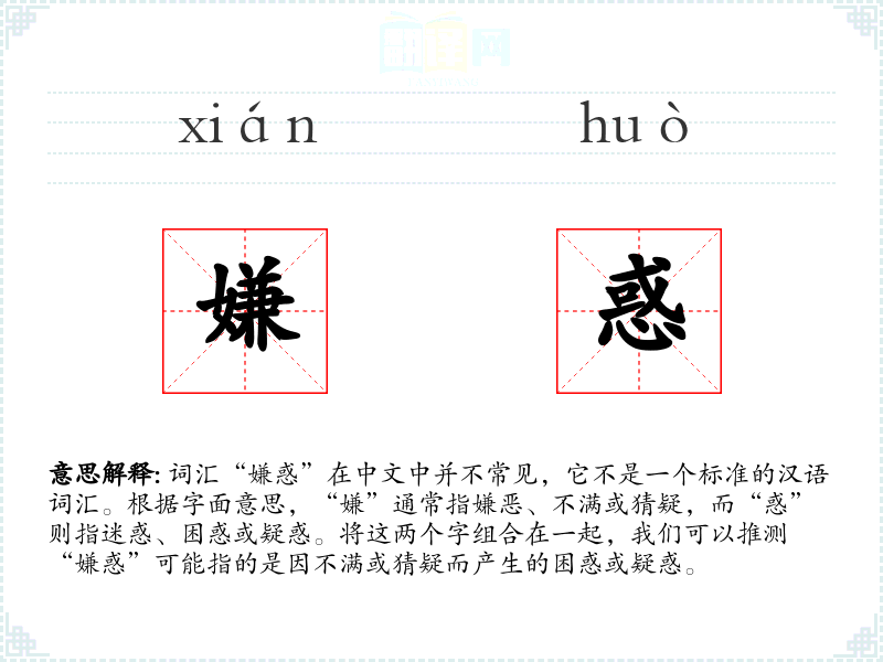 词汇“嫌惑”在中文中并不常见,它不是一个标准的汉语词汇。根据字面意思,“嫌”通常指嫌恶、不满或猜疑,而“惑”则指迷惑、困惑或疑惑。将这两个字组合在一起,我们可以推测“嫌惑”可能指的是因不满或猜疑而产生的困惑或疑惑。
