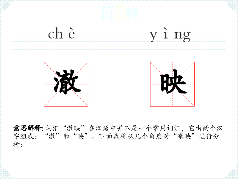 词汇“澈映”在汉语中并不是一个常用词汇,它由两个汉字组成:“澈”和“映”。下面我将从几个角度对“澈映”进行分析: