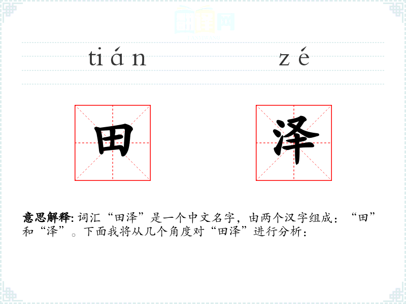 - 在人名中,“田泽”这样的组合体现了汉字的表意特点,通过字义的组合来赋予名字特定的寓意。