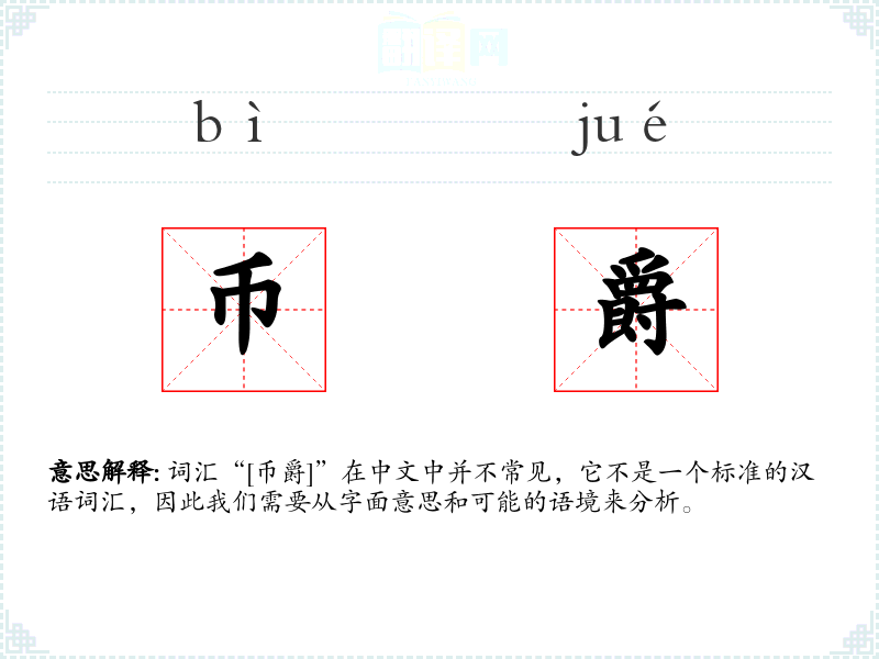 词汇“[币爵]”在中文中并不常见,它不是一个标准的汉语词汇,因此我们需要从字面意思和可能的语境来分析。