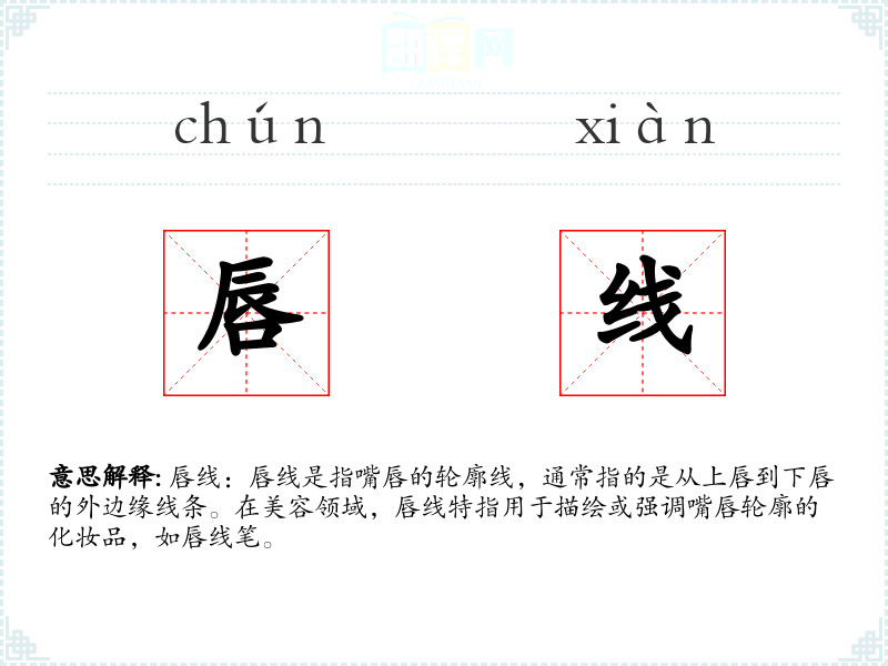 唇线一词在中文中直接由“唇”和“线”两个字组成,没有复杂的词源历史。在美容行业中,随着化妆品的发展,唇线笔等产品的出现,这个词的使用频率逐渐增加。