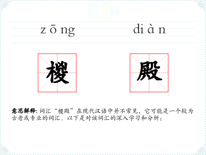 词汇“椶殿”在现代汉语中并不常见,它可能是一个较为古老或专业的词汇。以下是对该词汇的深入学习和分析: