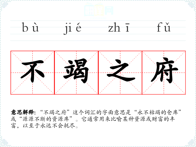 “不竭之府”这个词汇的字面意思是“永不枯竭的仓库”或“源源不断的资源库”。它通常用来比喻某种资源或财富的丰富,以至于永远不会耗尽。