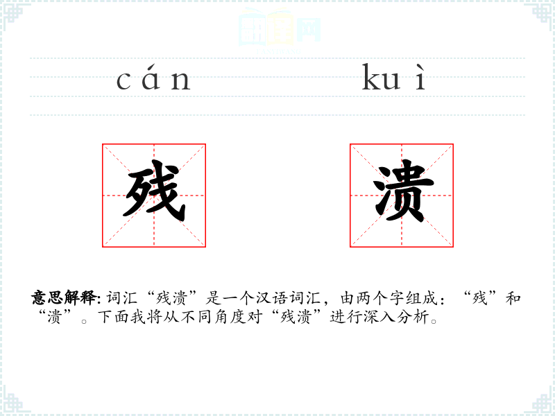词汇“残溃”是一个汉语词汇,由两个字组成:“残”和“溃”。下面我将从不同角度对“残溃”进行深入分析。