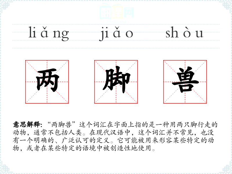 "两脚兽"的意思解释、两脚兽是什么意思由翻译网汉语词典查词提供。
