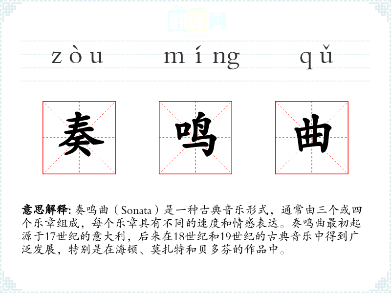 在音乐专业领域,奏鸣曲是一个非常重要的术语,用于描述特定的音乐结构和形式。在文学和口语中,奏鸣曲可能被用来比喻性地描述一系列有序的**或情感的展开,类似于音乐中的乐章。