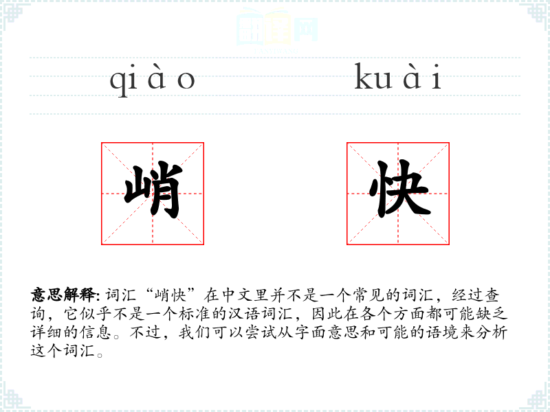 词汇“峭快”在中文里并不是一个常见的词汇,经过查询,它似乎不是一个标准的汉语词汇,因此在各个方面都可能缺乏详细的信息。不过,我们可以尝试从字面意思和可能的语境来分析这个词汇。