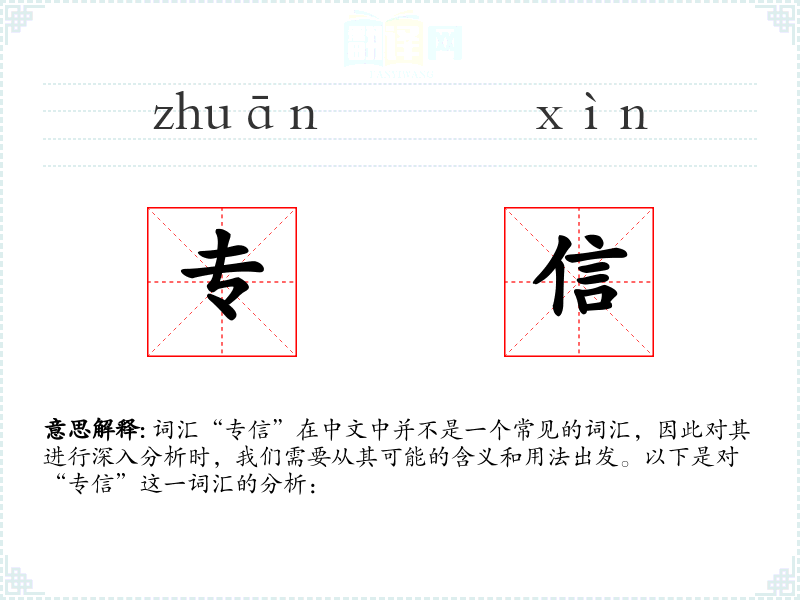 词汇“专信”在中文中并不是一个常见的词汇,因此对其进行深入分析时,我们需要从其可能的含义和用法出发。以下是对“专信”这一词汇的分析: