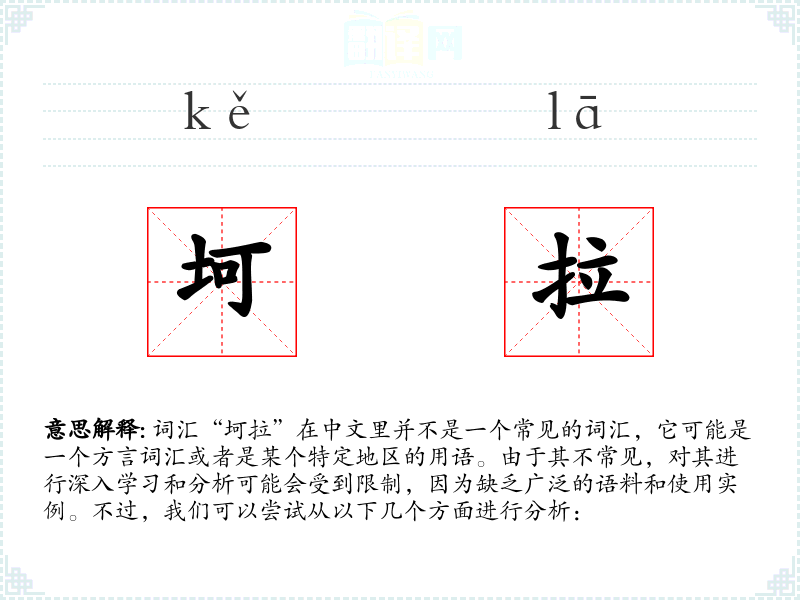由于“坷拉”这个词汇的信息有限,以上分析可能并不全面,如果能够获得更多关于这个词汇的具体信息,分析可能会更加深入和准确。