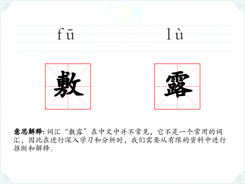 词汇“敷露”在中文中并不常见,它不是一个常用的词汇,因此在进行深入学*和分析时,我们需要从有限的资料中进行推断和解释。