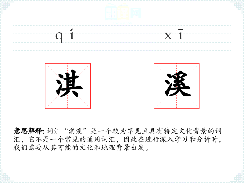 词汇“淇溪”是一个较为罕见且具有特定文化背景的词汇,它不是一个常见的通用词汇,因此在进行深入学*和分析时,我们需要从其可能的文化和地理背景出发。