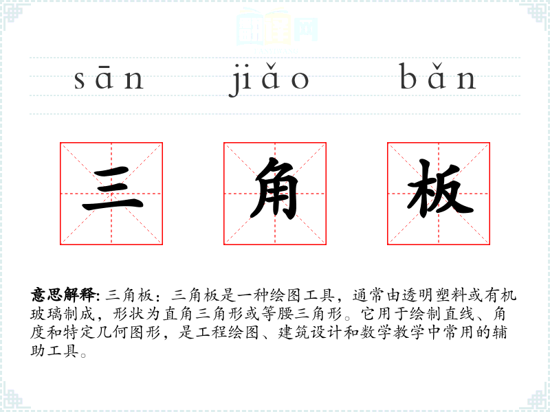 - 反义词:圆规(用于绘制曲线,与三角板的直线绘制功能相对)