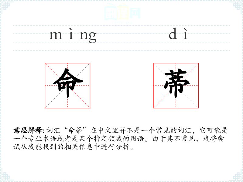 词汇“命蒂”在中文里并不是一个常见的词汇,它可能是一个专业术语或者是某个特定领域的用语。由于其不常见,我将尝试从我能找到的相关信息中进行分析。