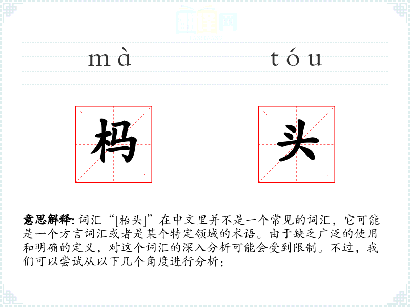 由于“[枱头]”不是一个明确的中文词汇,我们无法对其进行深入的分析和总结。在语言学习和表达中,遇到不明确的词汇时,最好的做法是查找可靠的资源或询问母语者以获得准确的信息。