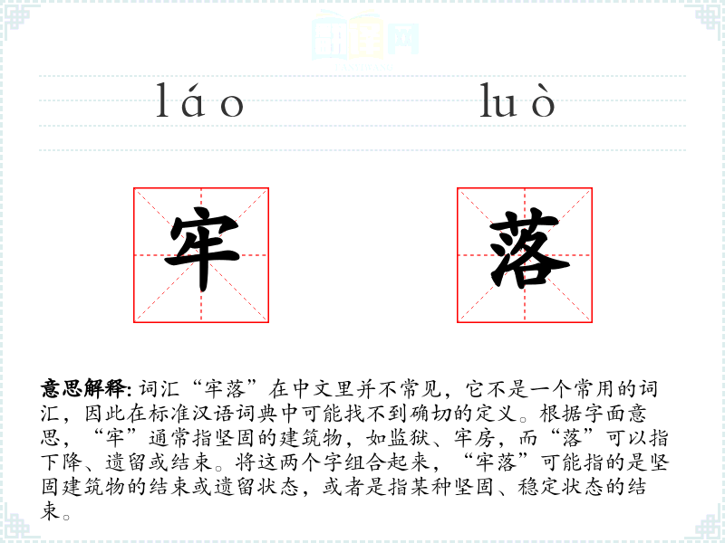 牢落的分字解释
