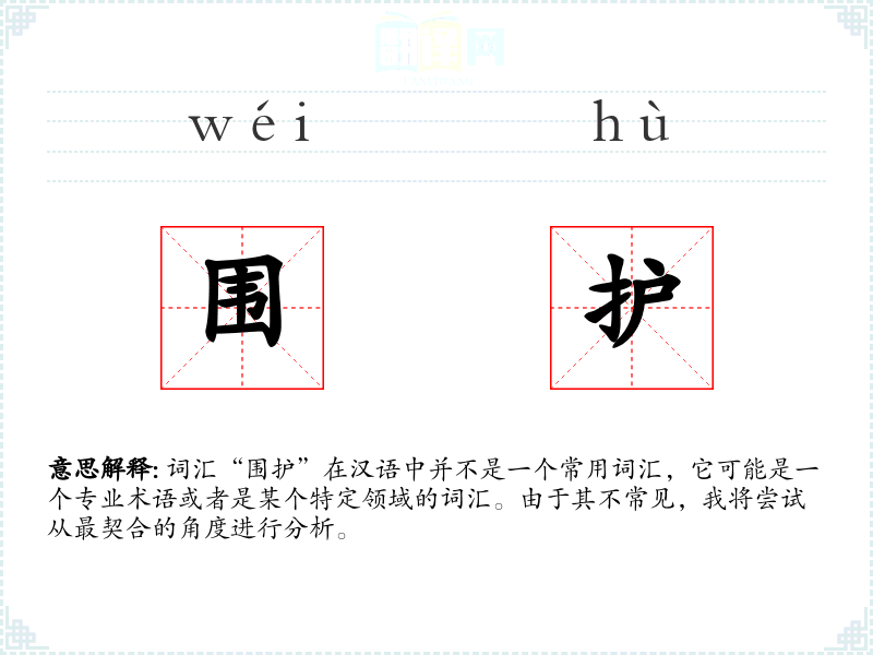 词汇“围护”在汉语中并不是一个常用词汇,它可能是一个专业术语或者是某个特定领域的词汇。由于其不常见,我将尝试从最契合的角度进行分析。