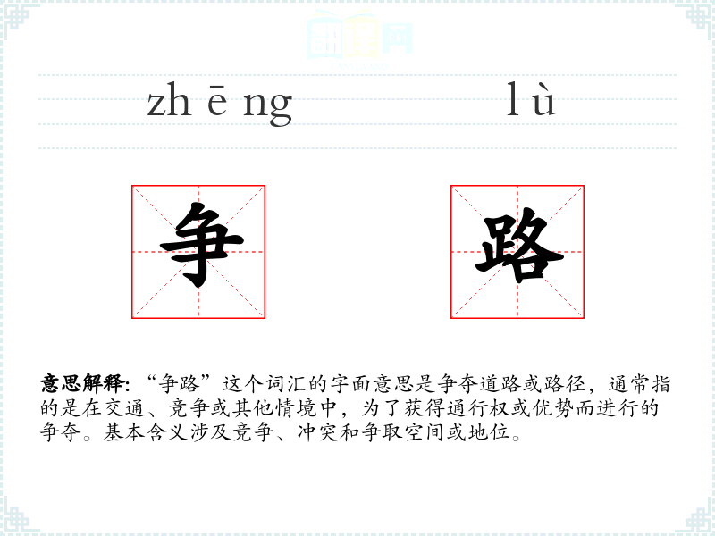 "争路"的意思解释、争路是什么意思由翻译网汉语词典查词提供。