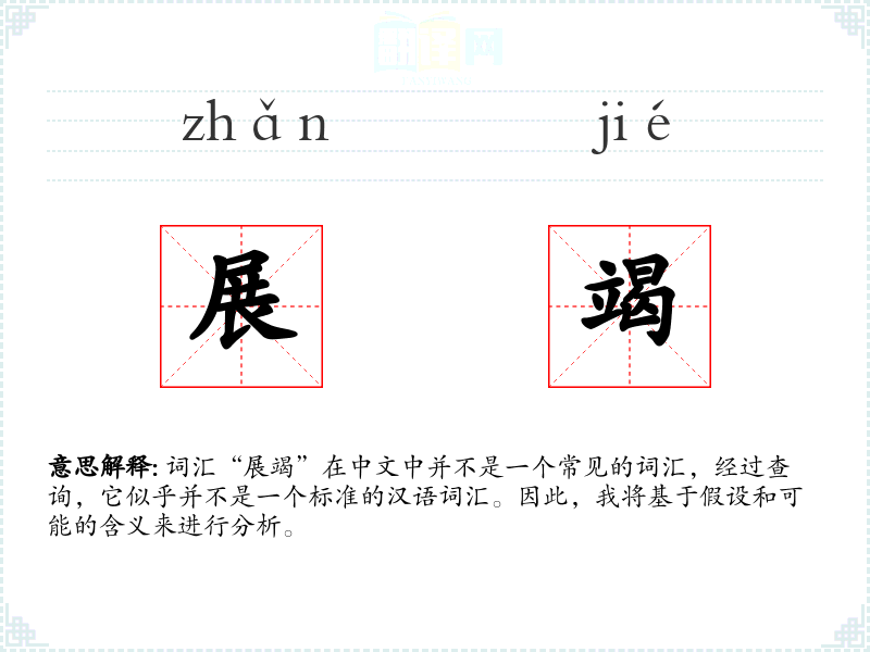 词汇“展竭”在中文中并不是一个常见的词汇,经过查询,它似乎并不是一个标准的汉语词汇。因此,我将基于假设和可能的含义来进行分析。