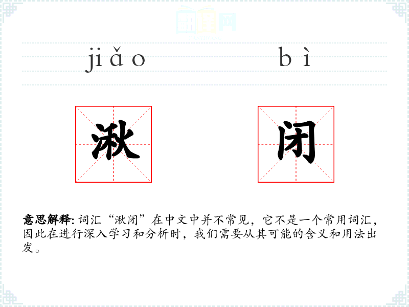 词汇“湫闭”在中文中并不常见,它不是一个常用词汇,因此在进行深入学*和分析时,我们需要从其可能的含义和用法出发。