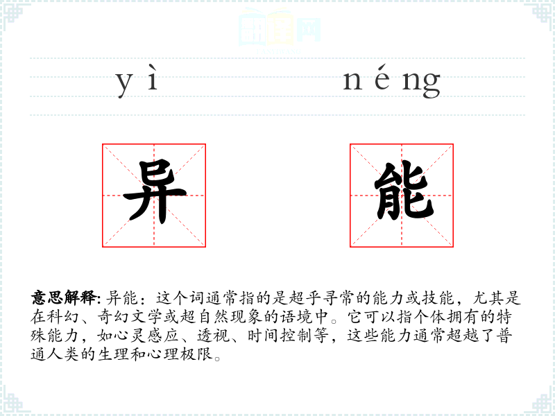 "异能"的意思解释、异能是什么意思由翻译网汉语词典查词提供。
