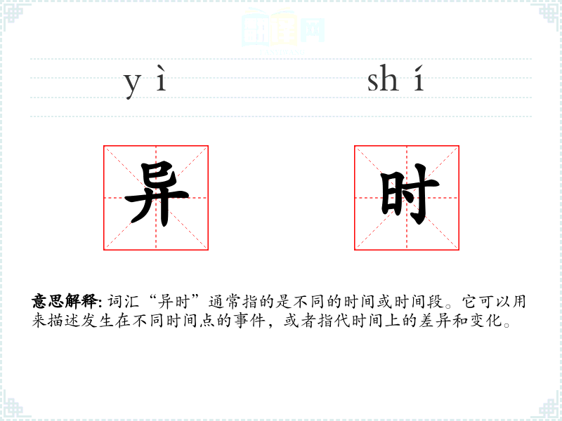 词汇“异时”通常指的是不同的时间或时间段。它可以用来描述发生在不同时间点的**,或者指代时间上的差异和变化。