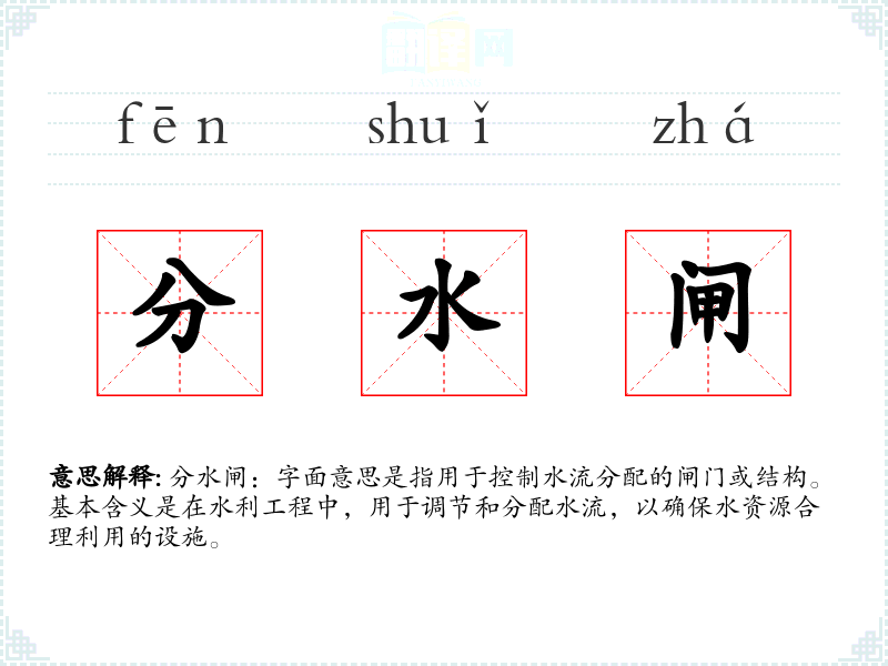 - 反义词:无(分水闸是一个特定术语,没有直接的反义词)