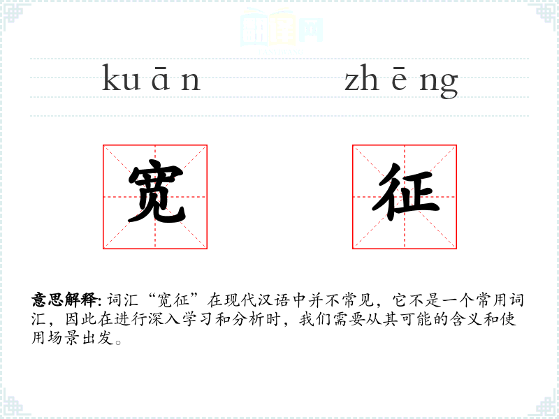 "宽征"的意思解释、宽征是什么意思由翻译网汉语词典查词提供。