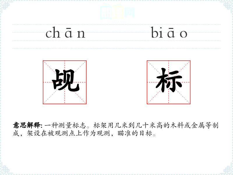 一种测量标志。标架用几米到几十米高的木料或金属等制成,架设在被观测点上作为观测,瞄准的目标。