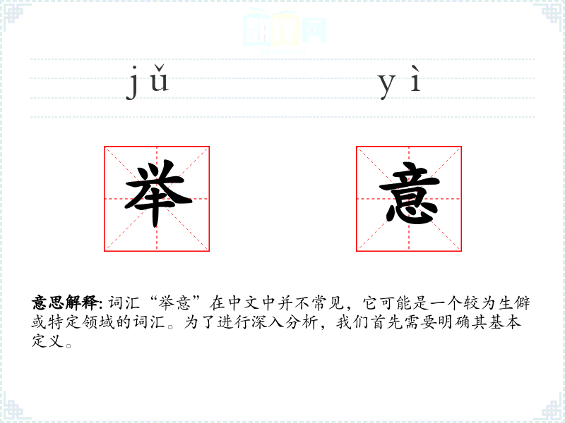 词汇“举意”在中文中并不常见,它可能是一个较为生僻或特定领域的词汇。为了进行深入分析,我们首先需要明确其基本定义。