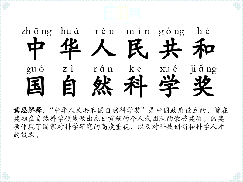 中华人民共和国自然科学奖的分字解释