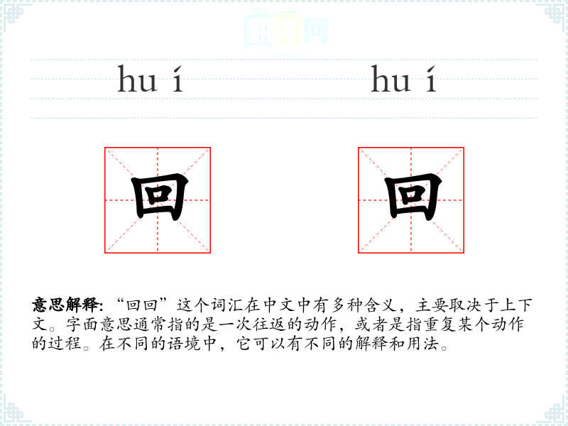 “回回”这个词汇在中文中有多种含义,主要取决于上下文。字面意思通常指的是一次往返的动作,或者是指重复某个动作的过程。在不同的语境中,它可以有不同的解释和用法。
