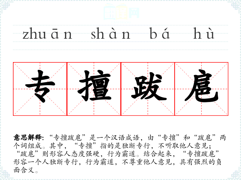 “专擅”和“跋扈”都是古代汉语词汇,随着时间的推移,这两个词的含义逐渐固定并结合使用,形成了“专擅跋扈”这一成语。