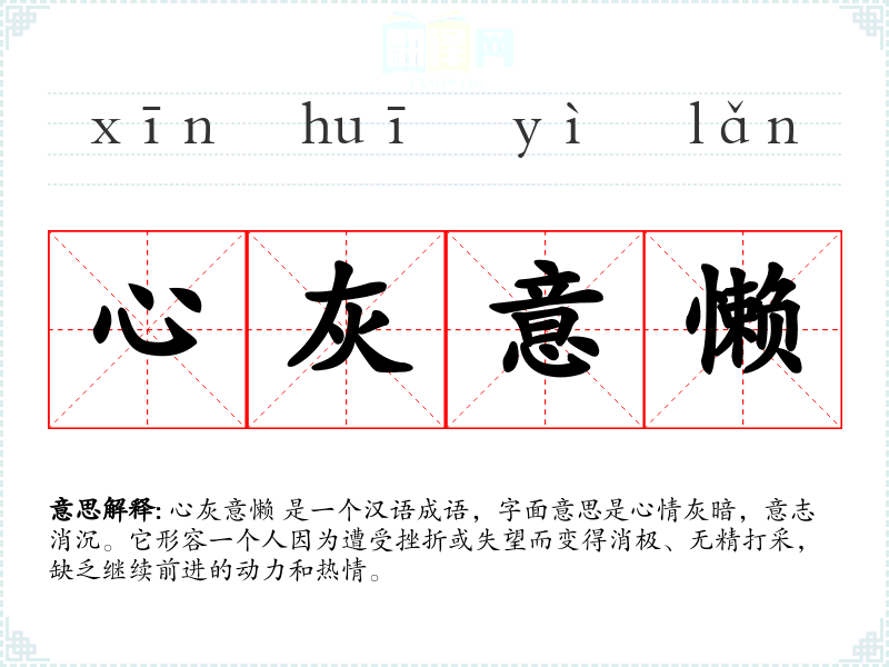 "心灰意懒"的意思解释、心灰意懒是什么意思由翻译网汉语词典查词提供。