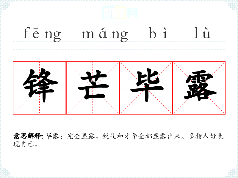 毕露:完全显露。锐气和才华全都显露出来。多指人好表现自己。