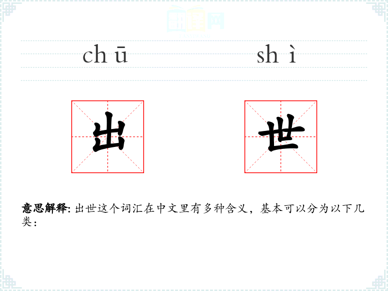 出世这个词汇在中文里有多种含义,基本可以分为以下几类:
