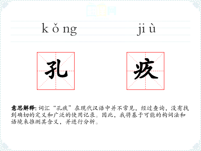 词汇“孔疚”在现代汉语中并不常见,经过查询,没有找到确切的定义和广泛的使用记录。因此,我将基于可能的构词法和语境来推测其含义,并进行分析。