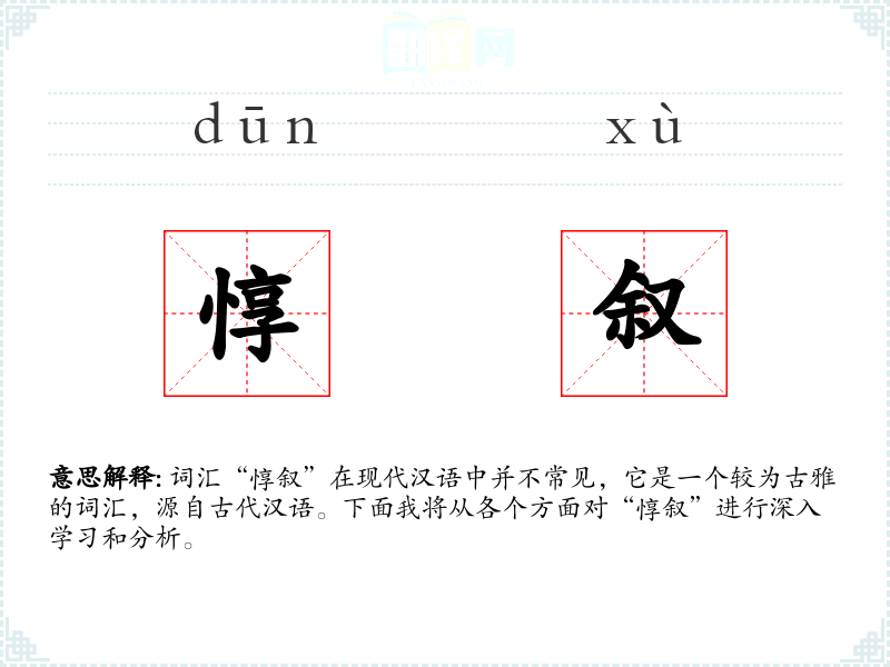 “惇叙”由两个字组成:“惇”意为敦厚、厚道;“叙”意为叙述、讲述。结合起来,“惇叙”可以理解为以敦厚、诚恳的态度进行叙述或讲述。