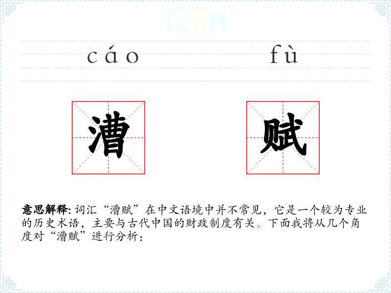 “漕赋”作为一个历史术语,虽然不常出现在现代语言中,但它对于理解*古代的财政和社会结构具有重要意义。在学历史或进行相关研究时,掌握这一词汇及其背后的历史背景是很有帮助的。