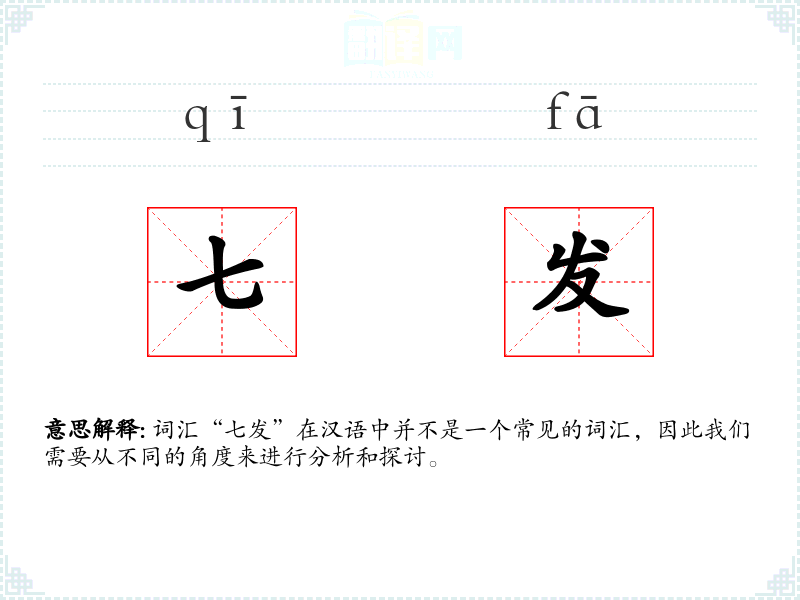 - 反义词:无(因为“七发”不是一个常用词汇,反义词不明显)