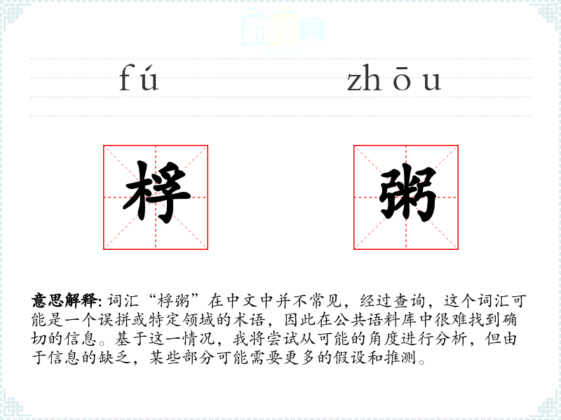 词汇“桴粥”在中文中并不常见,经过查询,这个词汇可能是一个误拼或特定领域的术语,因此在公共语料库中很难找到确切的信息。基于这一情况,我将尝试从可能的角度进行分析,但由于信息的缺乏,某些部分可能需要更多的假设和推测。
